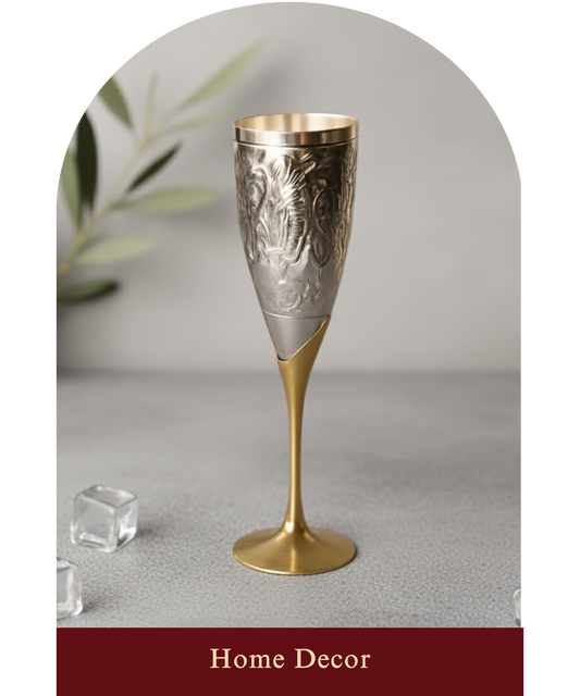 Bring a touch of regal charm and cultural heritage into your home with this exquisite German Silver Fine Carved Urli with Elephant Legs Stand. The urli—a traditional Indian vessel—is meticulously handcrafted from premium German silver, featuring intricate carvings of floral and paisley motifs across...