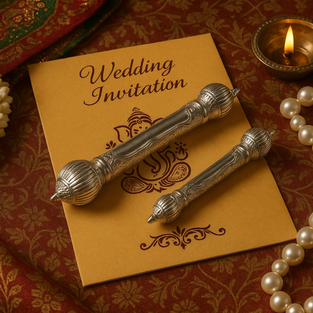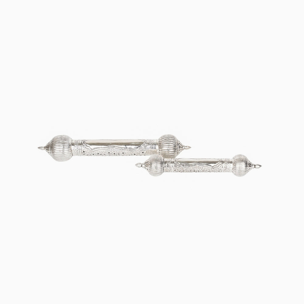 Preserve your heartfelt messages, sacred mantras, or ceremonial scrolls in our exquisitely designed German Silver Scroll Holder. Inspired by royal traditions and spiritual customs, this elegant piece is meticulously handcrafted with intricate patterns and a polished finish that adds a regal charm to any occasion.