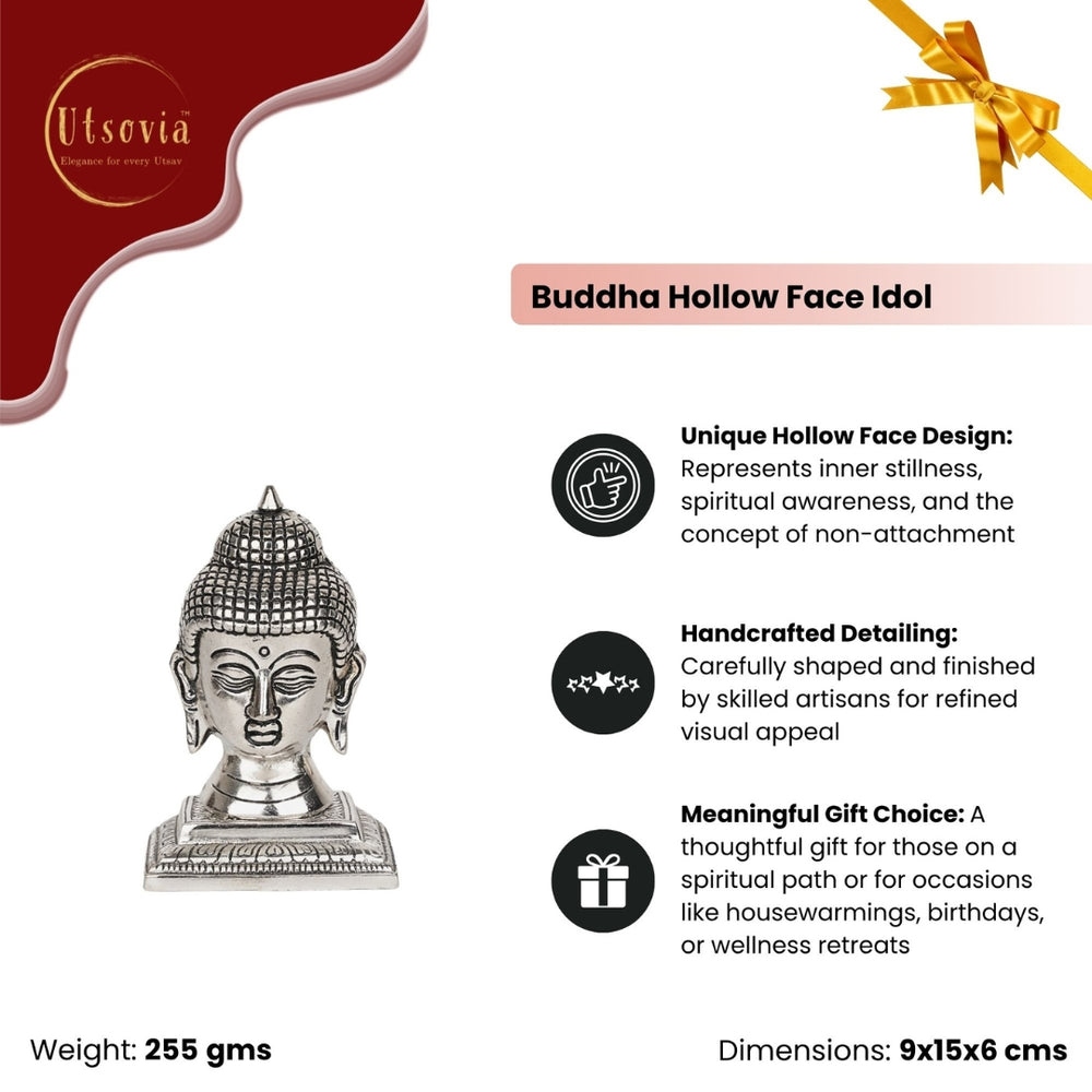 Bring calm and spiritual balance to your space with our German Silver Buddha Hollow Face Idol, a modern interpretation of timeless wisdom. Crafted in premium-quality German silver, this artistic piece features a hollow-style Buddha face, symbolizing emptiness, mindfulness, and inner peace—core teachings of Buddhist philosophy.