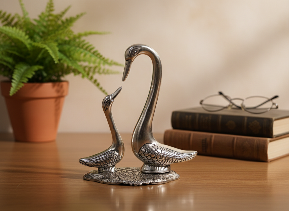 Add a touch of elegance and serenity to your décor with our exquisite German Silver Swan Set. Inspired by the swan’s timeless symbolism of grace, love, and purity, this handcrafted duo (or set) is beautifully shaped in a flowing, artistic form that captures the bird's natural elegance. Made from high-quality German silver, the swans feature intricate detailing, polished surfaces, and a luxurious finish—making them ideal for home décor, pooja setups, or as a thoughtful gift.