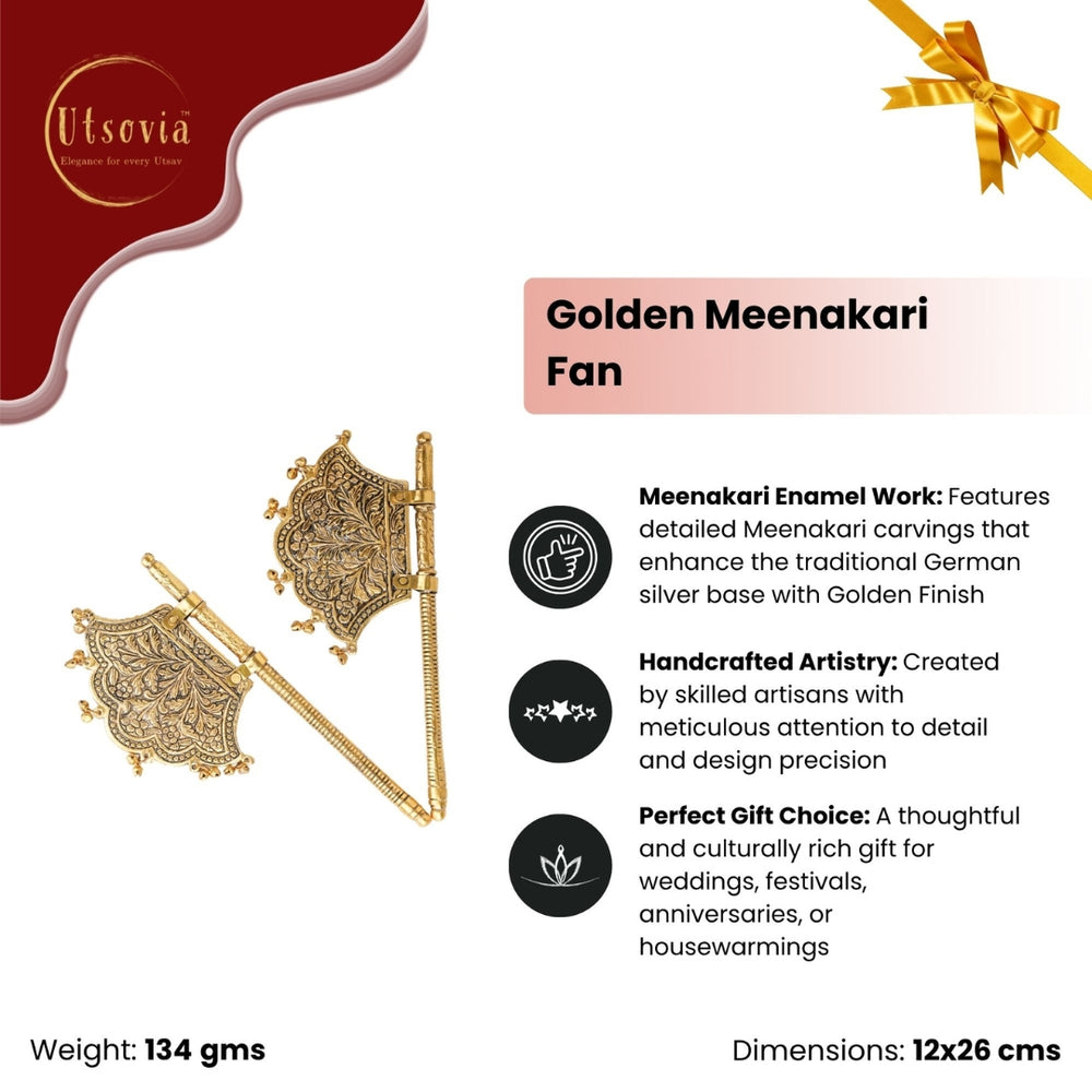 Celebrate the beauty of traditional Indian craftsmanship with our German Silver Pankhi (Hand Fan) adorned with vibrant Meenakari enamel work. Once a symbol of royalty and elegance, this decorative fan now serves as a stunning piece of art—perfect for your pooja room, festive setup, or as a unique gifting item.