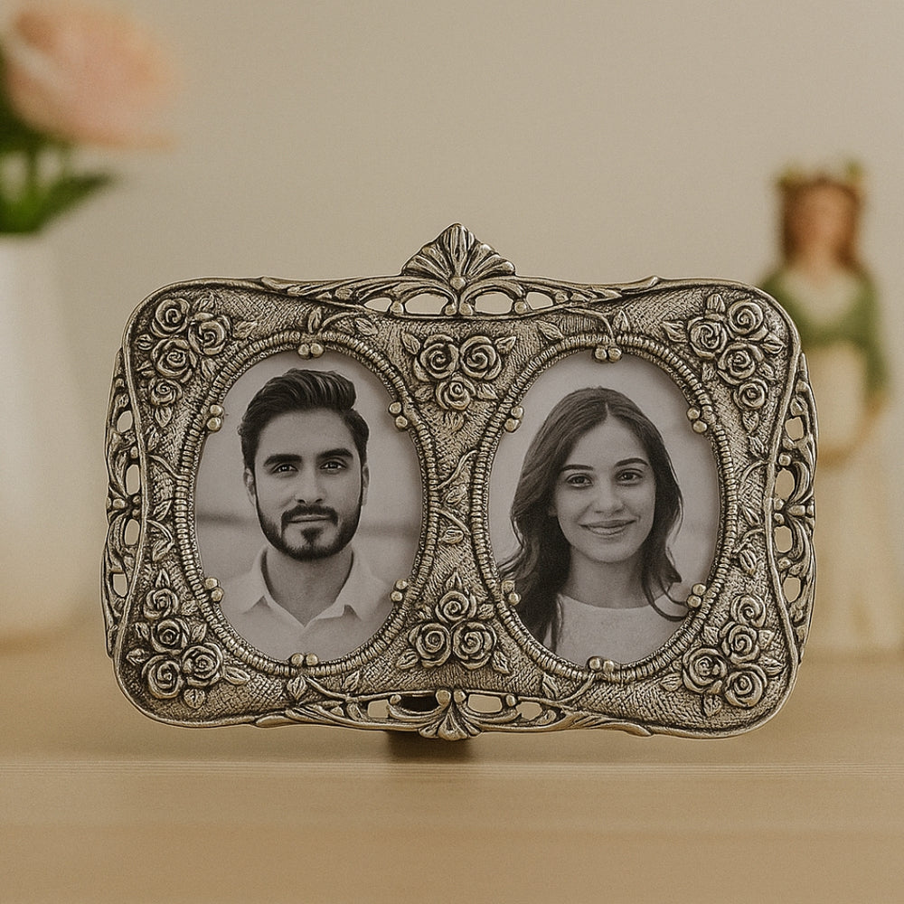 Frame your memories with the timeless beauty of roses. The German Silver Rose-Carved Photo Frame is a perfect blend of emotion, elegance, and artisan tradition.