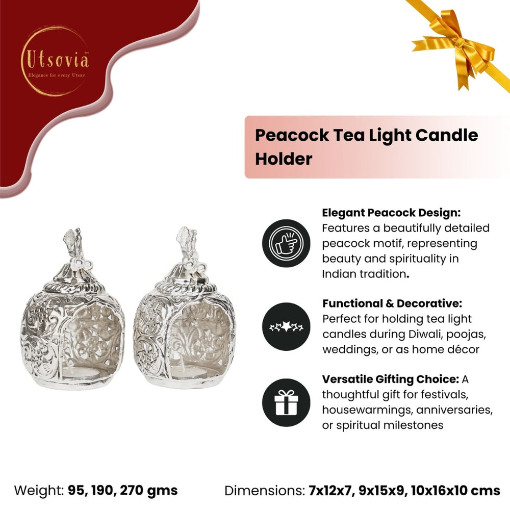 Bring warmth, light, and cultural richness into your home with this exquisite German Silver Peacock Tea Light Candle Holder—a perfect blend of spirituality and style.