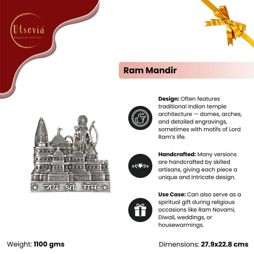 Design: Often features traditional Indian temple architecture — domes, arches, and detailed engravings, sometimes with motifs of Lord Ram’s life.