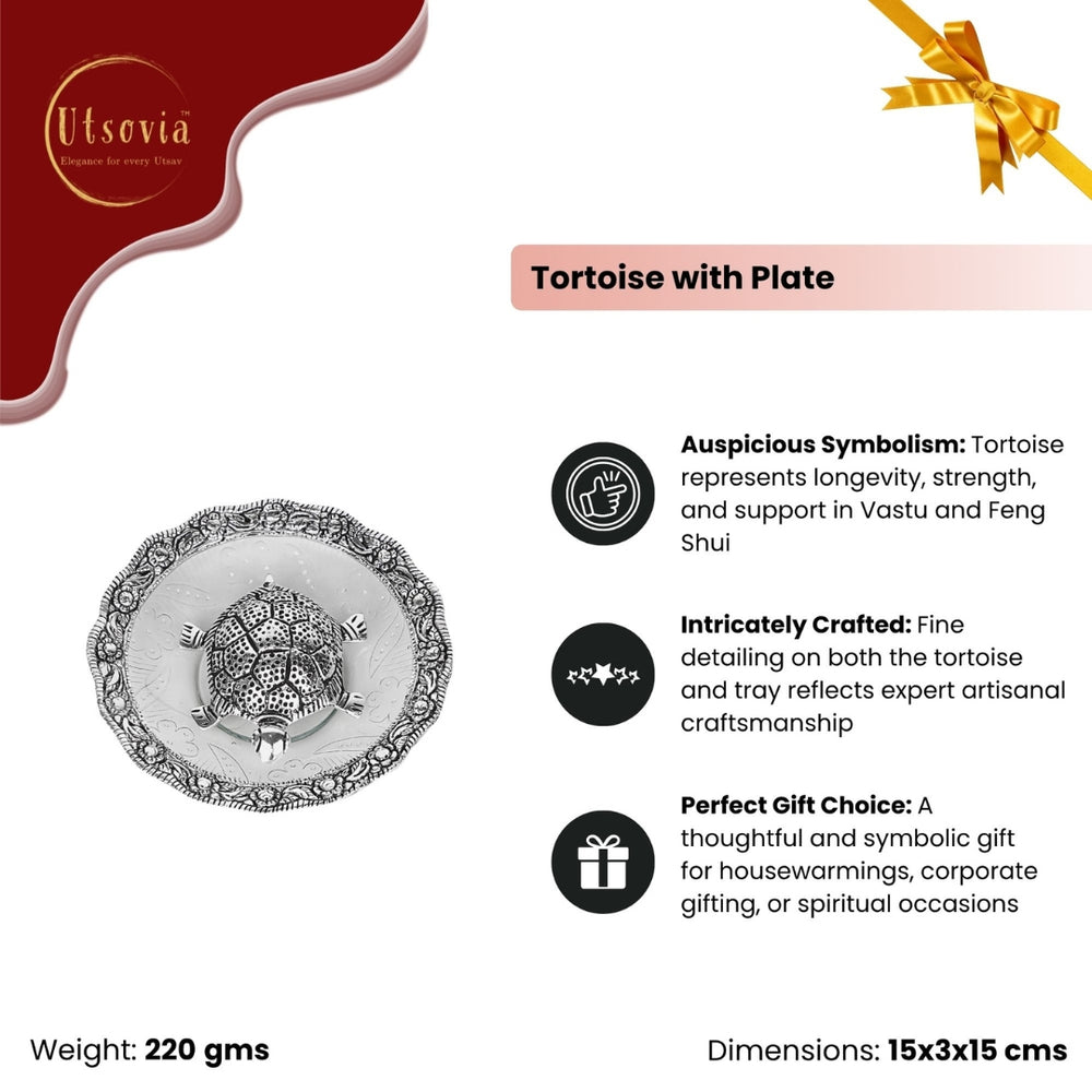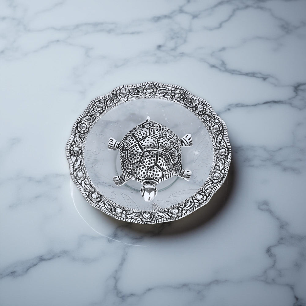 Enhance the spiritual and aesthetic appeal of your space with our German Silver Tortoise on Tray, a beautiful representation of Vastu and Feng Shui principles. The tortoise, a sacred symbol of stability, protection, and long life, is delicately crafted in premium German silver and placed on a matching engraved tray. Together, they form a powerful Vastu element believed to attract positive energy, wealth, and harmony.