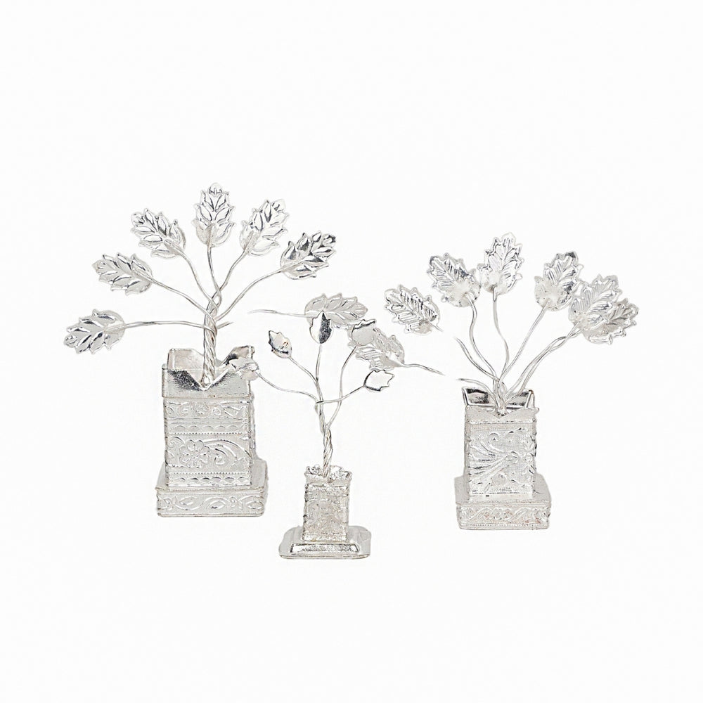 Bring divinity and tradition into your home with this intricately crafted German Silver Tulsi Plant. Revered as a sacred plant in Hindu culture, the Tulsi (Holy Basil) is considered a symbol of purity, protection, and prosperity. This beautifully designed German silver version replicates the traditional Tulsi Vrindavan (pot or pedestal) with ornate carvings and a miniature Tulsi shrub, often used as a substitute in places where growing a live plant isn’t feasible.